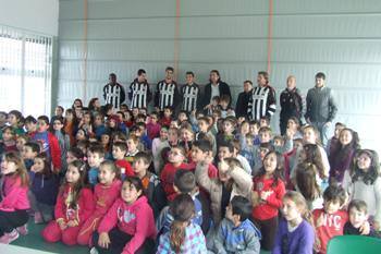 Os alunos das Escola de Refojos, em Aver-o-Mar, receberam esta manhã a visita duma comitiva do Varzim. Vários jogadores, entre eles Telmo e Tó Barbosa, estiveram à conversa com dezenas de crianças, que puderam ficar a conhecer melhor a profissão de futebolista e também a história do clube, através dos testemunhos dos ex-jogadores Cacheira e Vitoriano. O atual presidente Pedro Faria e o treinador Alexandre Vila Cova também marcaram presença na iniciativa que tem percorrido as escolas do concelho.