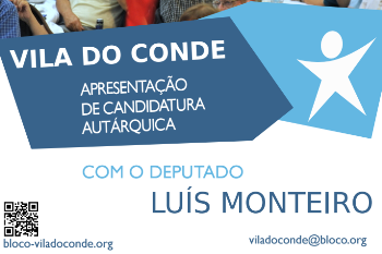 O Bloco de Esquerda escolheu este sábado para fazer a apresentação dos candidatos em Vila do Conde. Depois das cinco da tarde, o partido vai renovar a aposta nos cabeças-de-lista à câmara, António Louro Miguel, também à assembleia municipal, Armando Herculano, e divulgar o escolhido para a junta de freguesia da cidade. Na sessão marcada para a Biblioteca Municipal vai estar o deputado Luís Monteiro e haverá música de José Afonso.