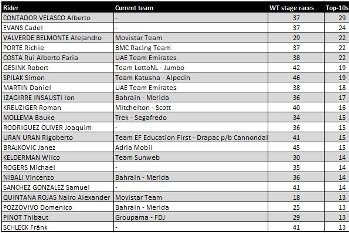 Rui Costa é o quinto ciclista com mais top-10 na classificação geral em corridas do World Tour desde que esse ranking foi criado. O ciclista poveiro partilhou uma tabela com os dados compilados pela página ‘cyclingvisualization’ e nela se vê o corredor da UAE Team Emirates em posição de destaque. Com os já retirados Alberto Contador e Cadel Evans na frente, Rui Costa surge igualado com Alejandro Valverde e Richie Porte com 22 top-10, mas perde no desempate percentual por causa do número de participações. O aguçadourense já alinhou em 38 provas do World Tour (ficam de fora as Grandes Voltas) e, por ainda ter 31 anos, poderá subir na tabela nos próximos tempos. Depois do quinto lugar na Volta à Romandia, a Volta à Suiça e a Volta a França deverão ser os próximos objetivos de Rui Costa, que já disse que estas estatísticas são “uma motivação extra” para o futuro.
