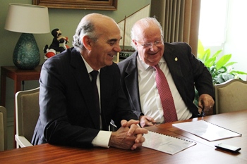 Esta manhã a Câmara da Póvoa de Varzim recebeu oficialmente o espólio queirosiano do escritor e jornalista portuense Paulo Sá Machado (à direita na imagem). A Biblioteca Municipal Rocha Peixoto vai, ao todo receber, 726 documentos relacionados com o universo do romancista nascido na Póvoa de Varzim: livros, revistas, dossiers temáticos, recortes de jornais, fotografias, postais e diversos objetos, destacando-se oito bustos de Eça de Queirós. A cerimónia do termo de doação do espólio foi assinado esta manhã pelo vereador Luís Diamantino (à esquerda).