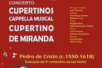 A Igreja do Carmo em Vila do Conde recebe este sábado à noite um concerto gratuito. É uma evocaçação do quarto centenário da morte de Pedro Cristo e será levado a efeito pelo grupo Cuppertinos Capella Musical, com direção de Luis Toscano. A Câmara de Vila do Conde insere a iniciativa no evento “O nosso tapete” que prevê a feitura, na Praça Vasco da Gama, de um tapete de flores sobre as rendas de bilros, na noite de 30 para 31 de Maio, véspera de feriado.