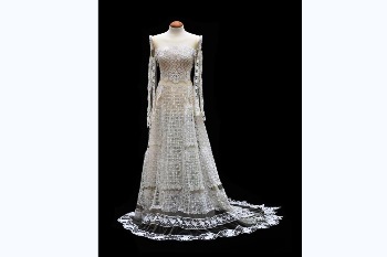 Um vestido de noiva em renda de bilros é a peça do mês para o Museu de Vila do Conde que, por causa disso, a colocou nos Paços do Concelho para que todos a possam admirar entre as 9 da manhã e as oito da noite. Foi o vestido concebido por Eugénia Cunha para o desfile do ano passado durante as festas de S. João e a designer recorreu para o efeito à reutilização e reciclagem de rendas antigas.