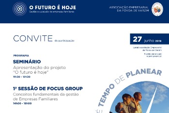 A Associação Empresarial da Póvoa de Varzim acolhe amanhã um seminário para apresentação do projeto "O futuro é hoje". Vai decorrer entre as 11h30 e as 12h30, sendo esta a parte matinal do evento. De tarde, das 14h às 18h, realiza-se a primeira sessão de Focus Group para abordar conceitos fundamentais da gestão de Empresas Familiares. Este é um projeto que a AEPV promove tendo como destinatários os respetivos associados e empresas do concelho, nomeadamente nas áreas do mar/turismo e do setor agroalimentar. Vai desenvolver-se através de várias ações até agosto do próximo ano. O objetivo é ajudar no desenvolvimento de bens/serviços e da capacidade competitiva nos mercados externos. Esta organização insere-se no quadro da Estratégia Regional de Especialização Inteligente da região Norte, esperando-se que possa provovar diversos benefícios com as ações propostas. Alguns objetivos mais específicos são: conhecer a realidade das empresas familiares, avaliar o potencial e a atitude face a várias problemáticas, sensibilizando, apoiando e informando os proprietários, de modo a que estes possam debater os desafios e apostar no empreendedorismo das novas gerações. Será criado um Gabinete de Apoio, responsável pela execução do projeto, sendo o passo seguinte identificar e caraterizar as empresas familiares do concelho da Póvoa de Varzim. A comissão de acompanhamento e avaliação conta com representantes da Associação Empresarial da Póvoa de Varzim, Câmara Municipal de Vila do Conde, Escola Superior de Hotelaria e Turismo do Instituto Politécnico do Porto, Cooperativa Agrícola da Póvoa de Varzim e Apropesca - Organização de Produtores de Pesca Artesanal.