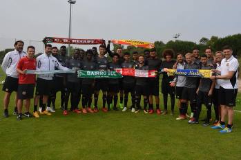 O Varzim realiza este sábado o primeiro jogo de preparação para a nova temporada. Os alvinegros defrontam o Aguçadoura, campeão concelhio, numa partida marcada para as 10h no Complexo Desportivo Municipal. Depois deste teste, os pupilos de Capucho terão ainda oportunidade de defrontar clubes do primeiro e segundo escalão antes da estreia oficial na Taça da Liga a 21 de julho. Até lá, o plantel deverá ainda ser reforçado com alguns elementos, sobretudo para as alas. Por agora, os elementos que treinaram nesta primeira semana de trabalho não deixaram passar ao lado as festas de São Pedro e fizeram uma fotografia de grupo com os cachecóis dos seis bairros da cidade.