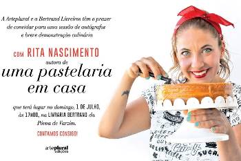 A Arteplural e a Bertrand promovem este domingo à tarde uma sessão de autógrafos e breve demonstração culinária com Rita Nascimento, autora do livro «Uma Pastelaria em Casa». O evento começa às 17h e decorre na Livraria Bertrand da Póvoa de Varzim, na Rua da Junqueira.