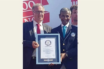 Vila do conde vai mesmo figurar no livro de recordes Guiness por ser a terra onde mais pessoas, em concreto 744, dançaram durante cinco minutos uma música tradicional portuguesa. A marca máxima foi alcançada ontem à tarde na Avenida do Ave e já foi certificada pelo árbitro indiano (na fotografia à direita) enviado pelo livro.Isto por iniciativa do rancho do Monte que está a festejar o centenário e a música escolhida foi uma tradicional “chula”, um tema composto em 1993, por Carlos Pontes (na imagem à esquerda), presidente da instituição, e com letra de José Coutinhas. Recorde-se que Vila do conde já figurava no livre com a maior renda de bilros do mundo, atribuída no ano transato.