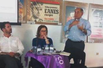 Na imagem: uma participações públicas de João Semedo (em pé) tendo a seu lado a médica Helena Oliveira e Vítor Pinto, coordenador do núcleo da Póvoa e V. Conde