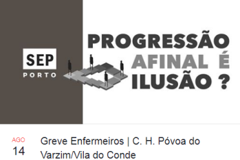 A greve dos enfermeiros no Centro Hospitalar Póvoa de Varzim/Vila do Conde teve uma adesão de 91%, anunciou a coordenadora da direção regional do Porto do Sindicato dos Enfermeiros Portugueses. Fátima Monteiro divulgou ontem estes números à Lusa após fazer uma ronda nos serviços, destacando que os blocos de cirurgia foram “os mais afetados, com as intervenções programadas a não se realizarem”, mas outros setores ficaram também paralisados. A greve, convocada especificamente para esta unidade de saúde e que decorreu à margem da greve nacional convocada pela Federação Nacional dos Sindicatos de Enfermeiros, insere-se nas iniciativas regionais do SEP. Entre os principais motivos para esta paralisação estiveram a reivindicação pela "justa e correta contagem dos pontos para efeito de descongelamento das progressões da carreira, independentemente do vínculo de cada enfermeiro", pelo “pagamento do complemento remuneratório de 150 euros aos enfermeiros especialistas, que já devia ter sido feito em janeiro” e para alertar para necessidade de contratação de mais enfermeiros para os serviços de forma a colmatar a passagem das 40 para as 35 horas de trabalho semanais.