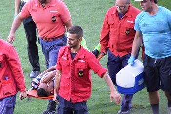 A lesão sofrida por Jeferson no jogo de ontem na casa do Benfica B está a preocupar o atleta que tem sido um dos principais esteios da defesa do Varzim. O central brasileiro contou ao repórter Fernando Novo que a maleita surgiu de forma inesperada num lance simples. “Saltei para cabecear para o Emanuel [ guarda-redes] e a perna travou. Ele fez a carga nas minhas costas e lesionei o adutor. Acho que é sério sim, mas vou fazer exames”, confidenciou o jogador. Essa é uma das declarações que vai poder ouvir nos noticiários da manhã de segunda-feira entre outras que comprovam que a partida no Seixal – derrota do Varzim por 1-0 – teve situação atípicas.