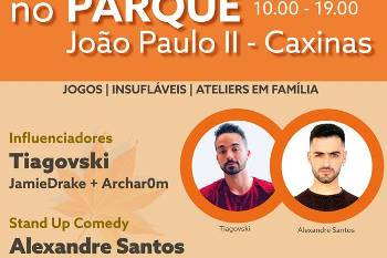 Tiagovski, um conhecido youtuber e o comediante Alexandre Santos são dois dos convidados para a festa “Outono no Parque” que vai decorrer amanhã, sábado, entre as 10 da manhã e as sete da tarde. A iniciativa intitulada "Outono no Parque" contará também Jamie Drake (youtuber) e de Archarom (jogador e comentador da Liga Portuguesa de League of Legends). Durante todo o dia não vão faltar jogos tradicionais, tiro com arco, ateliers para pais e filhos, os insufláveis, pinturas faciais, a modelagem de balões, e até rastreio de hipertensão e diabetes.