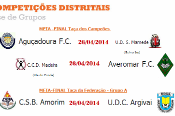 Quatro equipas da Póvoa de Varzim jogam este sábado as meias-finais das provas inter-concelhias de futebol popular. Na Taça dos Campeões, o Averomar visita o reduto do Macieira (Vila do Conde), numa espécie de final antecipada, enquanto o Aguçadoura recebe o São Mamede (Santo Tirso) na primeira-mão. Na Taça Federação, o Amorim é anfitrião do Argivai no primeiro jogo, um duelo poveiro que garante a presença de um dos clubes na final.
