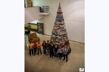 Já está pronta a árvore de Natal da Biblioteca Municipal José Régio, de Vila do conde. Mas não é uma árvore típica, é feita de livros, muitos livros. Mais propriamente 6700 exemplares que demoraram 14 horas a colocar na forma cónica com seis metos de altura.