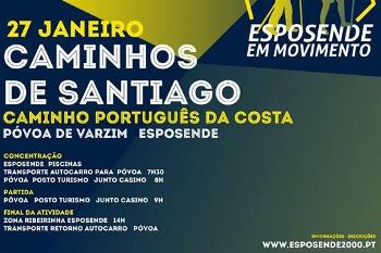 Integrado no programa “Esposende em Movimento”, tem lugar no próximo domingo uma caminhada entre Póvoa de Varzim e Esposende, designada “Caminhos de Santiago, Caminho Português da Costa”. A concentração está marcada para 7h30, junto às piscinas de Esposende. Daí, os participantes seguem, em autocarro, até às imediações do Casino da Póvoa. Depois da realização de exercícios de aquecimento, a caminhada arranca às 9 horas, tendo chegada prevista para as 14 horas, junto às Piscinas de Esposende. Está garantido o transporte por autocarro. Quem quiser participar tem de ter mais de 14 anos e desembolsar 4 euros, custo que inclui guia do percurso, seguro, duche, abastecimento e o transporte. As inscrições estão abertas até às 22 horas desta quinta-feira e podem ser efetuadas em www.esposende2000.pt. A organização diz que a ideia é “dar a conhecer um itinerário cultural, valorizando o património e sensibilizando as populações para a temática dos Caminhos de Santiago”.