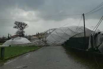 Uma estufa de grandes dimensões ficou totalmente destruída devido aos efeitos da depressão ‘Helena’. Uma rajada fortíssima de vento arrastou no ar a estrutura (um túnel de 120mx12m) e esta só parou algumas dezenas de metro ao lado, atravessando uma estrada e derrubando pelo caminho dois postes de eletricidade na Rua da Longa, em Terroso. Ninguém ficou ferido. Tudo aconteceu a meio da manhã desta sexta-feira e obrigou ao corte da via, tendo sido necessário recorrer aos serviços de equipas da EDP e da Proteção Civil para resolver o problema.
