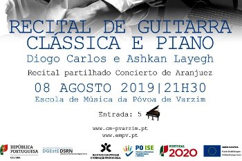 O Auditório Municipal da Póvoa de Varzim acolhe logo à noite o concerto de Diogo Carlos (guitarra) e Ashkan Layegh (piano) que apesar de jovens já venceram prémios durante a sua carreira. O espetáculo irá terminar com o Concierto de Aranjuez, o trabalho mais emblemático de Joaquín Rodrigo, que expressa os sons e as imagens da Espanha mais tradicional. Os bilhetes que custam 5 euros estão à venda na Escola de Música da Póvoa de Varzim.