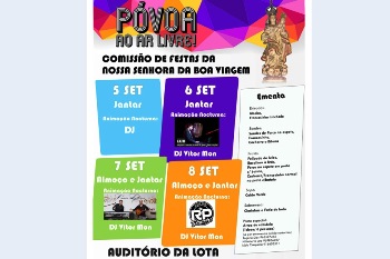 Começa esta quinta-feira a última edição de 2019 do “Póvoa ao Ar Livre” uma iniciativa de animação organizada pela Câmara Municipal da Póvoa de Varzim que, para o efeito, manteve uma tenda e outros serviços junto ao Auditório da Lota. Desta quinta-feira até domingo, o espaço vai ficar por conta da Comissão de Festas de Nossa Senhora da Boa Viagem, em Aguçadoura. Todas as noites haverá a presença de cantores, DJ’S ou até grupos de dança e uma ementa com entradas, sandes, pratos de peixe e carne, sobremesas e como especialidade o arroz de cabidela. A entrada é gratuita e hoje o evento, tal como amanhã aliás, decorre somente ao jantar. Sábado e domingo também há almoços.