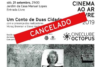 A Associação Cultural Octopus que tem o cine-clube tinha previsto para amanhã comemorar o 41.º aniversário, no jardim da Casa Manuel Lopes, na Avenida Mouzinho de Albuquerque, na Póvoa de Varzim, com uma sessão especial de cinema ao ar livre: nada mais nada menos do que a projeção do documentário “Um conto de duas cidades” que aborda a vida local nas décadas de 50 e 60 do século passado. Estava inclusive prevista a presença de Morag Brenna e Steve Harrison que realizaram o trabalho e no final o festejo do aniversário, mas a previsão de chuva já mandou o programa por água abaixo. A sessão está cancelada e o cineclube regressa no próximo dia 3 de Outubro, com a obra-prima de Akira Kurosawa, Ran - Os Senhores da Guerra, inserido no É Aqui in Ócio – Festival Internacional de Teatro, que se inicia amanhã sábado, dia 21.