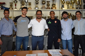 O reforço peruano da equipa sénior de Voleibol do Clube Desportivo da Póvoa, já chegou e em apenas dois dias parece estar integrado e satisfeito com o clube e a cidade. Alvaro Hidalgo (na fotografia de camisola preta) já foi apresentado à direção do clube e foi ao repórter Fernando Novo a quem prestou as primeiras declarações (ouça no noticiário). A propósito recordo que no próximo domingo à tarde o Clube Desportivo da Póvoa vai apresentar no seu pavilhão rodas as equipas de voleibol numa jornada que começa às três da tarde.