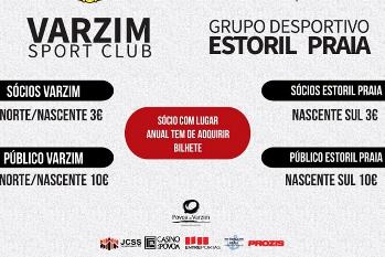 Já são conhecidos os preços para o jogo do Varzim com o Estoril no próximo domingo às três da tarde. Como o jogo é da Taça de Portugal, o campo é considerado neutro e assim os sócios dos dois clubes pagam o mesmo – três euros – e mesmo os varzinistas que têm um lugar anual têm de comprar o ingresso. Quanto ao público, os ingressos custam 10 euros e os afetos aos poveiros são encaminhados para as bancadas Norte e Nascente enquanto os estorilistas têm um espaço na parte Sul da bancada nascente.