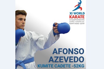 Afonso Azevedo é um dos doze atletas que vão representar Portugal no 11.º Campeonato do Mundo WKF de Cadetes, Juniores e Sub 21, no Chile. O karateca do CKA (Centro Karaté Aguçadourense) Póvoa de Varzim ruma a Santiago com objetivos de competir ao mais alto nível na competição que começa esta quarta-feira e vai decorrer até domingo. O jovem é orientado pelo mestre Vítor Poças, que já disse publicamente ser “um enorme orgulho para a Póvoa de Varzim ter um representante na elite do karaté mundial”, tendo acrescentado que Afonso Azevedo “está mais do que preparado para competir a este nível” e desejado “toda a sorte para conseguir atingir os objectivos a que se propõe”.