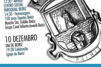 O Dia de Beiriz assinala-se esta terça-feira, 10 de dezembro, com a celebração de uma missa na igreja paroquial da freguesia a partir das 19h30. A data resulta do orago, dedicado a Santa Eulália de Mérida, padroeira da freguesia. Em rigor, a efeméride começou a ser festejada com a cerimónia de entrega da “medalha de mérito” pela Junta da união de freguesias da Póvoa de Varzim, Beiriz e Argivai. Como reconhecimento dos serviços e contributos para o engrandecimento do nome da terra foram distinguidas a família Brandão Miranda (fundadora dos Tapetes de Beiriz), Heidi Hanneman (impulsionadora da nova vida dos tapetes) e Cátia Ferreira (atual proprietária). A festa realizada no salão do Centro Social e Paroquial incluiu um almoço convívio no passado sábado e contou com as participações do Coro Infanto Juvenil da Paróquia de Beiriz e do Rancho Santa Eulália de Beiriz.