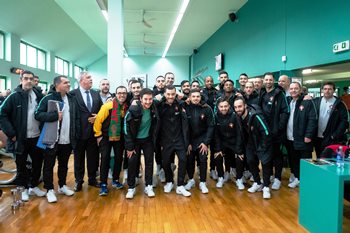 Portugal tem hoje na Póvoa de Varzim o jogo de estreia na fase de elite de qualificação para o Campeonato do Mundo de Futsal que vai decorrer na Lituânia. A seleção nacional defronta a Bielorrúsia às 20h30, três horas depois da partida de abertura entre a Itália e a Finlândia. Na véspera do arranque da competição, a comitiva lusa visitou as instalações do MAPADI (na imagem), algo que deixou em delírio os utentes da instituição que cuida de cidadãos com deficiência. Destaque para o encontro especial entre os craques nacionais e o utente Ricardo Pires, um dos capitães da seleção nacional de futsal de portadores de Síndrome de Down que se sagrou campeã europeia. Acerca da presença da seleção, o presidente da Câmara, Aires Pereira, destacou a importância da mesma para Póvoa.
