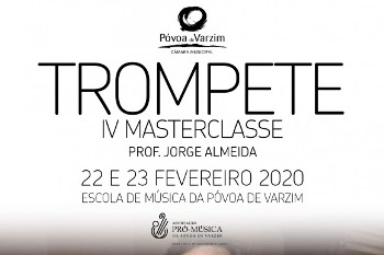 As inscrições para a IV Masterclasse de Trompete já se encontram abertas. A formação vai decorrer nos dias 22 e 23 de fevereiro, no Auditório Municipal, e será dirigida por Jorge Almeida. A ficha de inscrição está disponível e os interessados em participar nesta Masterclasse devem efetuar o pagamento da propina presencialmente nas instalações da Escola de Música da Póvoa de Varzim ou através de transferência bancária. O valor da inscrição para alunos da Escola de Música da Póvoa de Varzim é de 25 euros e para alunos externos é de 40 euros.