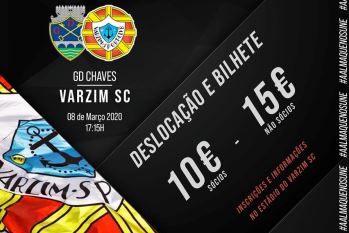 O Varzim Sport Club está a organizar uma viagem para os seus adeptos que queiram assistir ao próximo jogo no domingo em Chaves frente ao Desportivo para a jornada 24 da Segunda Liga. O custo para sócios é de 10 euros e para os restantes adeptos 15 euros, mas os valores incluem deslocação e o bilhete para a partida que vai começar às 17h15 e, por isso, a saída da Póvoa terá de suceder às 13 horas. O clube fornece mais informações aos interessados que se dirijam ao estádio.