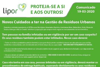 Tudo isto são medidas que podem ser essenciais para diminuir o risco de propagação de contágio do coronavírus e a Lipor garante que ela, empresa, e os municípios “tudo farão para garantir o melhor serviço agradecendo a melhor compreensão para eventuais adaptações que possam ocorrer”.