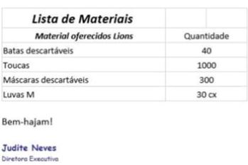 Lions ofereceu material ao ACES e já recebeu agradecimento