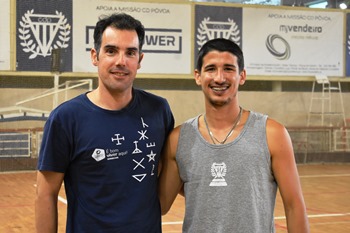 Nos últimos tempos na Onda Viva temos dado conta das muitas novidades no plantel sénior masculino do Clube Desportivo da Póvoa que, em setembro e numa competição limitada, terá a possibilidade de subir à 1.ª divisão nacional. O repórter Fernando Novo já apresentou as caras novas, mas agora há que dar voz também a quem já cá estava e ficou (ouça todos no noticiário).Por exemplo, João Orfão (à esquerda na fotografia da esquerda) continua a merecer a confiança do treinador Edgar Silva e do seccionista Igor Oliveira, e acredita que a subida vai ser possível. Na mesma linha, também João Barbosa (na mesma imagem) se sente bem na Póvoa e crê na ascensão. Por outro lado, Miguel Ferreira (à esquerda na fotografia da esquerda) e João Silva (na mesma imagem) representam o que se faz e como se faz o trabalho de formação do Clube Desportivo da Póvoa. Miguel já em final de carreira e a fazer parte dos quadros técnicos da secção, analisou o plantel atual enquanto João Silva que está a chegar ao escalão sénior espera evoluir já na 1.ª divisão.