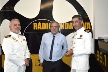 Já aqui lhe contámos que houve mudança de capitão dos portos da Póvoa de Varzim e de Vila do Conde e, consequentemente, do líder dos comandos locais da Polícia Marítima. Saiu José Marques Coelho (na imagem mais à esquerda com o administrador da rádio, José Gomes Alves), a seu lado e entrou Bruno Ferreira Teles (na imagem à direita) e ambos vão estar no programa Grande Entrevista da Onda Viva que passa na rádio (96.1 fm ou internet em www.radioondaviva.pt) aos sábados à uma e às sete da tarde e, no domingo ao meio-dia, e posteriormente a qualquer altura na secção podcast na página da Internet da estação. Aproveitámos para saber junto do oficial que esteve cá quatro anos como está o processo de construção, no Alfeite, da nova lancha do Instituto de Socorros a Náufrago, a “Cego do Maio” e Marques Coelho deu uma boa notícia para a Póvoa de Varzim e Vila do Conde (áreas que terão mais usufruto) : a embarcação já está em testes na água. É um meio que certamente ficará, quando estiver concluída, sob a alçada do novo comandante Ferreira Teles que conhece as características da lancha, como referiu no programa.