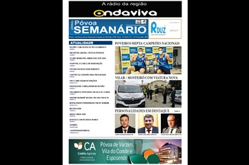 Com 32 páginas a cores e informação quanto baste já está nas bancas mais uma edição do seu Póvoa Semanário. A direção da publicação escolheu desta vez como destaques da 1.ª página, acompanhados por fotografias apropriadas ao tema, a obtenção pela sétima vez do campeonato nacional de futevólei por parte da dupla poveira constituída por Miguel Pinheiro e Nélson Pereira. No rosto está também a nova carrinha da União de Freguesias Vilar e Mosteiró, em Vila do Conde, e também como habitualmente três personalidades: Gaspar Pais, presidente do conselho de administração do Centro Hospitalar que está a renovar as instalações, António Cunha que passou a liderar a Comissão de Coordenação regional do Norte e, finalmente, António da Silva Campos que é presidente do Rio Ave e quer continuar a ser após eleições. Mas há mais chamadas de atenção na primeira página, designadamente sobre a COVID 19, a atividade partidária e o trabalho camarário, as informações sobre ações policiais e os realces para o arranque de dragagens e para a aprovação, no executivo, do orçamento da Câmara de Vila do Conde. O desporto é o habitual, mas com uma extensão à rubrica Bitaites que entrevista o guarda-redes Ricardo Nunes.