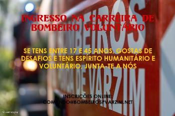 “Junta-te a nós! Vem ser Bombeiro Voluntário na Póvoa de Varzim.” Foi com este apelo que a corporação comandada por Francisco Nova lançou uma campanha para tentar atrair novos elementos. O ingresso na carreira de bombeiro voluntário pode ser feito por quem tem entre 17 e 45 anos. Os interessados devem gostar de desafios e ter espírito humanitário, segundo o cartaz que revela que as inscrições podem ser feitas pelo email Este endereço de email está protegido contra piratas. Necessita ativar o JavaScript para o visualizar..