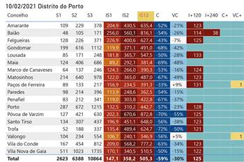 A Póvoa de Varzim teve 127 infetados entre 4 e 10 de fevereiro e em Vila do Conde o registo do mesmo período foi de 167 infetados. O documento aponta uma descida de pessoas infetadas em relação à penúltima semana, entre 28 de janeiro e 3 de fevereiro, altura em que se registaram 421 casos no município poveiro (uma queda de 70 por cento) e 454 casos no município vilacondense (uma queda de 63 por cento).