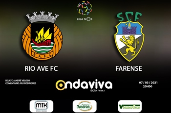 Este domingo há futebol de primeira na Rádio Onda Viva. A partir das 8 da noite pode escutar o relato do jogo e entre o Rio Ave e o Farense para a jornada 22 da 1.ª Liga. A equipa vila-condense somou até agora 22 pontos ou seja tem mais três do que os algarvios. O árbitro será João Pinheiro. Para ouvir este domingo, a partir das 20 horas a narração de André Veloso e os comentários de Rui Rodrigues.
