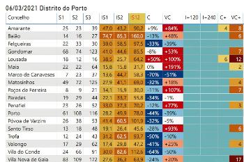 Refira-se que esta informação é mais atual em comparação com a divulgada na passada segunda-feira pela Direção Geral da Saúde, reforçando o posicionamento dos dois concelhos no patamar de risco moderado de contágio.