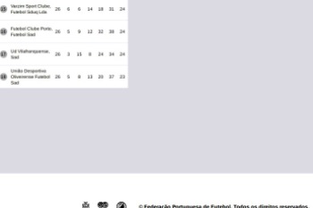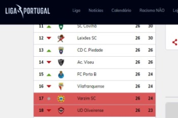 Mesmo sem jogar o Varzim voltou a cair nos lugares perigosos da 2.º Liga. É que ontem a equipa B do FC do Porto muniu-se de quatro elementos da formação principal - Carraça, Sarr, Romário Baró e Evanilson - e ao intervalo já estava a vencer por 3-0 na casa do Mafra que sofreu ainda mais um golo, aos 87’, por Rodrigo Conceição, o “homem do jogo” não só pelo golo que marcou, mas também pelas assistências que executou além do restante desempenho. Com a vitória, os azuis e brancos entregaram o último lugar à Oliveirense e deram um pulo na classificação se bem que o posicionamento dos clubes não seja nesta altura algo de consensual na imprensa desta manhã. A Liga que é a organizadora e , como tal deve ser a fonte mias fiável, coloca na tabela (imagem da direita) o Varzim no penúltimo lugar, também com 24 pontos, ou seja em lugar de descida e atrás dos dragões e do Vilafranquense. Já a Federação Portuguesa de Futebol (fotografia da esquerda) põe os varzinistas à frente do FC do Porto e dos ribatejanos, por essa ordem.