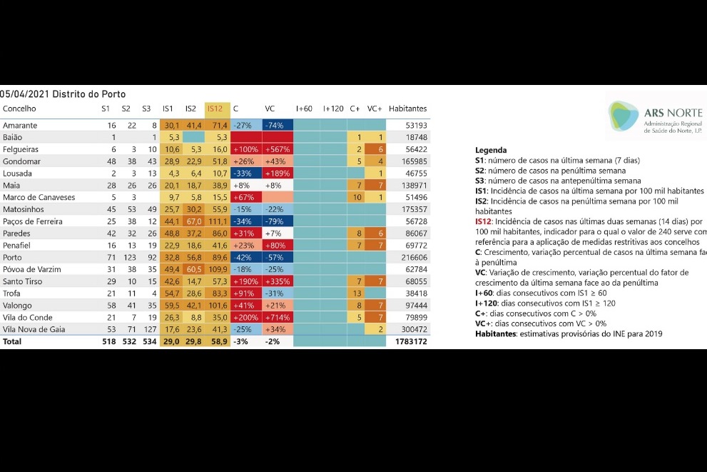 Numa última semana subiu 200 por cento o número de casos de COVID 19 em Vila do Conde segundo os dados publicados pela Administração Regional de Saúde (ARS) do Norte - veja em pormenor no fundo desta página -, o que levou a Câmara Municipal presidida por Elisa Ferraz (na imagem) a emitir de imediato um comunicado a solicitar a todos que cumpram as regras de segurança e mantenham “o empenho e atenção para que não haja um agravamento das medidas”. “A saúde de todos depende do comportamento de casa um”, lê-se na comunicação pública da autarquia que constata que o caso vila-condense vai na linha do que está a suceder na região. A verdade é que, acrescenta o município, verificaram-se “nos últimos 14 dias 35 novas infeções por 100 mil habitantes” quando a “a anterior incidência era de oito novos casos por 100 mil habitantes”.E é este indicador que, recorde-se, “serve como referência para a aplicação de medidas restritivas aos concelhos”, refere a ARS. Ou seja Vila do Conde ainda está longe da linha vermelha estabelecida pelo Governo - uma incidência superior a 120 casos em 14 dias -, mas se tivermos em linha de conta que tinha ocorrido uma descida na semana anterior, este novo número significa um disparo para cima de 714 por cento, daquilo que é chamado de “variação de crescimento”. Na Póvoa e, segundo a mesma contabilidade da ARS, houve uma descida de novos casos novos (foram registados 31 quando na penúltima semana esse número foi de 38, menos 18 por cento), mas analisando a incidência a 14 dias por 100 mil habitantes – e lembrando que a Póvoa tem menos de 63 mil pessoas (62874) – a “incidência” está em 109,9, bem mais perto da tal linha perigosa dos 120 casos.