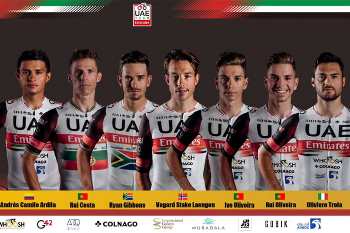 A equipa de Rui Costa confirmou na manhã desta segunda-feira a composição que vai disputar a Volta ao Algarve entre a próxima quarta-feira e domingo. Tal como já lhe tínhamos adiantado, o ciclista poveiro é o nome mais sonante dos selecionados da UAE Emirates onde estão também mais dois portugueses, os gémeos Oliveira (Ivo e Rui), o italiano Oliviero Troia, o colombiano Andres Camilo Ardilla, o sul-africano Ryan Gibbons e o norueguês Vegard Stake Laengen. A competição terá 765,8 quilómetros, ao longo de cinco etapas, duas com montanha, duas para sprinters e um contrarrelógio individual. Começa em Lagos e vai finalizar no domingo no Alto do Malhão em Loulé.