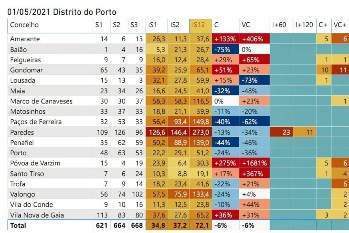 A Póvoa de Varzim mantinha a 1 de maio, segundo a ARSN, uma incidência cumulativa de 30,3 casos em 14 dias por cada 100 mil habitantes (19 casos reais), enquanto Vila do Conde apresentava 23,8 casos em 14 dias por cada 100 mil residentes (19 casos reais). Isto dá um somatório de 38 casos juntando as duas localidades e estes númerosestão bastante abaixo da linha de risco de uma travagem ou recuo no desconfinanento, sendo nesta altura dos melhores de todo o distrito do Porto.