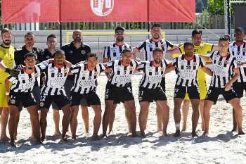 Depois de ter vencido ontem ao Sótão por 7-2 (recorde aqui) hoje a formação do Varzim empatou a três golos com o GRAP - no tempo regulamentar e com vitória final por 5-3 no prolongamento, o que desta forma lhe garantiu dois pontos) na sétima jornada do campeonato de Elite em futebol de praia, totalmente disputada no Campo da Rodovia, em Braga. A Póvoa de Varzim recebe no feriado de 10 de junho todos as partidas da próxima jornadas, mais propriamente no campo criado no recinto do estádio do Aguçadoura. O Varzim que tem seis pontos ( está no quinto posto empatado com Buarcos s Sótão) jogará com o Chaves às 10 horas.