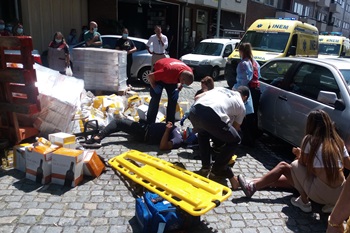 Um acidente de trabalho provocou dois feridos ao final da manhã na Rua Ramalho Ortigão, na Póvoa de Varzim. Dois trabalhadores da empresa transportadora Torrestir ficaram feridos quando descarregavam paletes com caixas de vinho que tinham como destino abastecer uma garrafeira ali existente. Um problema na plataforma do camião terá originado a queda do material e dos funcionários (pai e filho). O socorro foi prestado inicialmente por populares e mais tarde por elementos da ambulância do INEM dos Bombeiros da Póvoa e a viatura SIV do Centro Hospitalar. As vítimas, depois de estabilizadas, foram transportadas para o serviço de urgência do hospital poveiro, sendo que o elemento mais velho estava em piores condições que o mais novo. A estrada que dá acesso às Finanças ficou com o acesso restrito durante um par de horas.