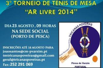Este sábado há ténis de mesa para ver no interior do porto de pesca da Póvoa de Varzim. O Grupo Recreativo e Etnográfico ‘As Tricanas Poveiras’ organiza, através da secção de desporto, o III Torneio de Ténis de Mesa “Ar Livre”. A competição arranca logo às 9 da manhã no exterior da sede da coletividade e prolonga-se pelo resto do dia.