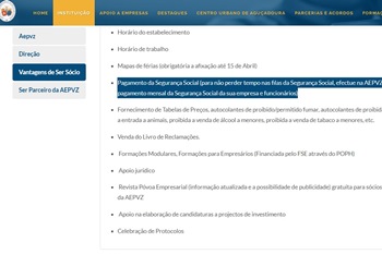 À Rádio Onda Viva chegaram manifestações de desagrado de alguns sócios da Associação Empresarial da Póvoa de Varzim com a decisão da recém-eleita direção, liderada por Joaquim Araújo (na imagem), em acabar com o recebimento dos valores de pagamento à Segurança Social (das firmas sócias e seus funcionários) tal como vinha a suceder há vários anos. A medida foi transmitida aos visados numa reunião na noite da passada terça-feira e terá sido invocado que a associação não quer fazer concorrência a gabinetes de contabilidade. O certo é que os empresários terão sido surpreendidos com, nalguns casos, um inesperado encargo e perda de tempo e, ao que pudemos apurar, na reunião foi transmitida aos dirigentes a referida insatisfação nomeadamente por uma comerciante de Beiriz que lamentou que não tivesse ocorrido diálogo e a situação tivesse sido apresentada como um facto consumado. Face a esta ação irredutível por parte da direção, os visados - a lojista e outros - preferiram não dar a voz publicamente, mas confirmaram a surpresa e desagrado pelo inconveniente. A Onda Viva procurou junto da associação esclarecer a situação, e foi solicitado à rádio que enviasse, por correio eletrónico, questões escritas e dirigidas ao presidente da instituição. Tal feito ontem de manhã, mas Joaquim Araújo não respondeu, não acusou a receção do pedido e nem esclareceu – pelo menos para já - os motivos para a direção, que lidera, ter cessado o serviço que era prestado. Uma decisão que, pelo menos no que até agora veio a público, foi a primeira a ter impacto nos sócios da Associação Empresarial da Póvoa de Varzim. Aliás, na página oficial da instituição, existe uma lista de “vantagens de ser sócios” (imagem da esquerda) e lá aparece: “ Pagamento da Segurança Social (para não perder tempo nas filas da Segurança Social, efectue na AEPVZ o pagamento mensal da Segurança Social da sua empresa e funcionários)”, fim de citação. Agora, pelos vistos, tal deixará de ser possível, mesmo para quem tem as quotas em dia na instituição, não obstante - e esse foi outro dado adiantado por um outro sócio - existir nos quadros da associação funcionários habilitados para o efeito.