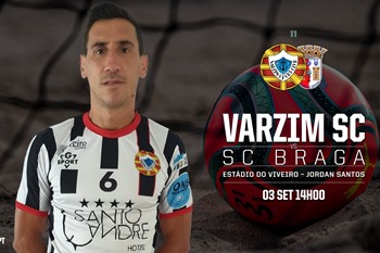 O Varzim joga esta tarde de sexta-feira a partida dos quartos de final da Taça de Portugal de futebol de praia. Os alvi-negros vão defrontar o Braga num jogo que começa às 14h00 e vai decorrer no Estádio do Viveiro - Jordan Santos, na Nazaré. O desafio terá lotação máxima de 50 por centos nas bancadas, seguindo a organização as normas da Direção Geral de Saúde. Tito (na imagem) e o restante plantel vão ter pela frente uma equipa onde pontificam vários poveiros, destacando-se o capitão Bruno Torres. Recorde-se que os bracarenses sagraram-se recentemente campeões nacionais e o Varzim terá de estar ao mais alto nível para alcançar a surpresa