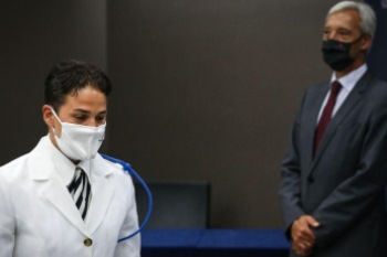 Já lhe contámos na Onda Viva que é de Vila do Conde a primeira mulher de sempre a terminar o exigente curso de mergulhadores da Marinha Portuguesa (recorde aqui). Pois ontem foi o dia da primeiro-grumete Adriana Aquino de Oliveira, de 24 anos, receber “o diploma de conclusão do curso bem como os emblemáticos cordões azuis, que simbolizam que pertencem a unidades operacionais dos mergulhadores”, refere a Marinha. A cerimónia realizou-se na Esquadrilha de Subsuperfície e foi presidida pelo ministro da Defesa, João Gomes Cravinho, acompanhado pelo Chefe do Estado-Maior da Armada, almirante António Mendes Calado. Adriana Oliveira que é licenciada em Ciências do Mar, pela Universidade dos Açores, recebeu os elogios do governante: "Hoje assinalámos mais uma barreira quebrada com a integração da grumete Adriana Oliveira como a primeira mulher a concluir com sucesso este exigente curso. Parabéns. É mais uma pioneira nas Forças Armadas e isso só nos deve encher de orgulho", declarou Gomes Cravinho que acrescentou: "Esperamos que a grumete Adriana Oliveira sirva de inspiração a muitas outras jovens e que, apesar de ser a primeira, não seja a última a seguir este exigente percurso".
