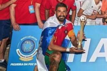 Foi com Bruno Torres a envergar mais uma vez a a bandeira da Póvoa de Varzim (na imagem) que Portugal festejou a conquista o terceiro título europeu de futebol de praia, o oitavo de sempre da seleção nacional. O poveiro integrou a representação do país que venceu a Ucrânia, Suíça, Itália e Bielorrússia, esta ontem na final por 7-4, numa prova perfeita realizada realizada na pria de Buarcos, na Figueira da Foz. Foi também nesta Liga Europeia que Bruno Torres atingiu a sua internacionalização número 300, como lhe contámos na Onda Viva (recorde aqui).