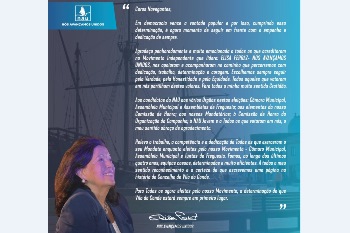 Elisa Ferraz quebrou o "silêncio" e comentou a derrota que sofreu nas eleições autárquicas do passado domingo que deram a vitória ao PS de Vítor Costa. Ontem à noite a ainda presidente da Câmara de Vila do Conde emitiu um comunicado onde se pode ler: “ Em democracia vence a vontade popular e por isso, cumprindo essa determinação, é agora momento de seguir em frente com o empenho e dedicação de sempre”. A autarca agradece “penhorada e muito emocionada aos que acreditaram” no movimento que ela lidera – NAU (Nós Avançamos Unidos) assim como a todos os que foram candidatos, apoiantes e votantes. Elisa Ferraz releva ainda o trabalho desenvolvido nos últimos quatro anos por todos os eleitos que, não tem dúvidas, escreveram “uma página na história de Vila do Conde”. Isto “num caminho que percorremos com dedicação , trabalho, determinação e coragem. Escolhemos sempre seguir pela verdade, pela honestidade e pela equidade”.