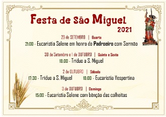 Em Argivai começa esta quarta-feira mais uma Festa de S. Miguel. Em pleno Dia de S.Miguel, S.Rafael e S.Gabriel, as celebrações religiosas em honra do padroeiro da freguesia arrancam com uma eucaristia solene com início às 21h. Segue-se o Tríduo na quinta e sexta-feira às 18h, momento que no sábado começa meia-hora mais cedo e será seguido de uma missa vespertina às 18h. No domingo decorre a eucaristia solene às 15h com benção das colheitas. A paróquia assegura que a “Igreja já está belamente adornada para estes dias de oração e louvor”, sublinhando que “todos são bem vindos” para as celebrações.